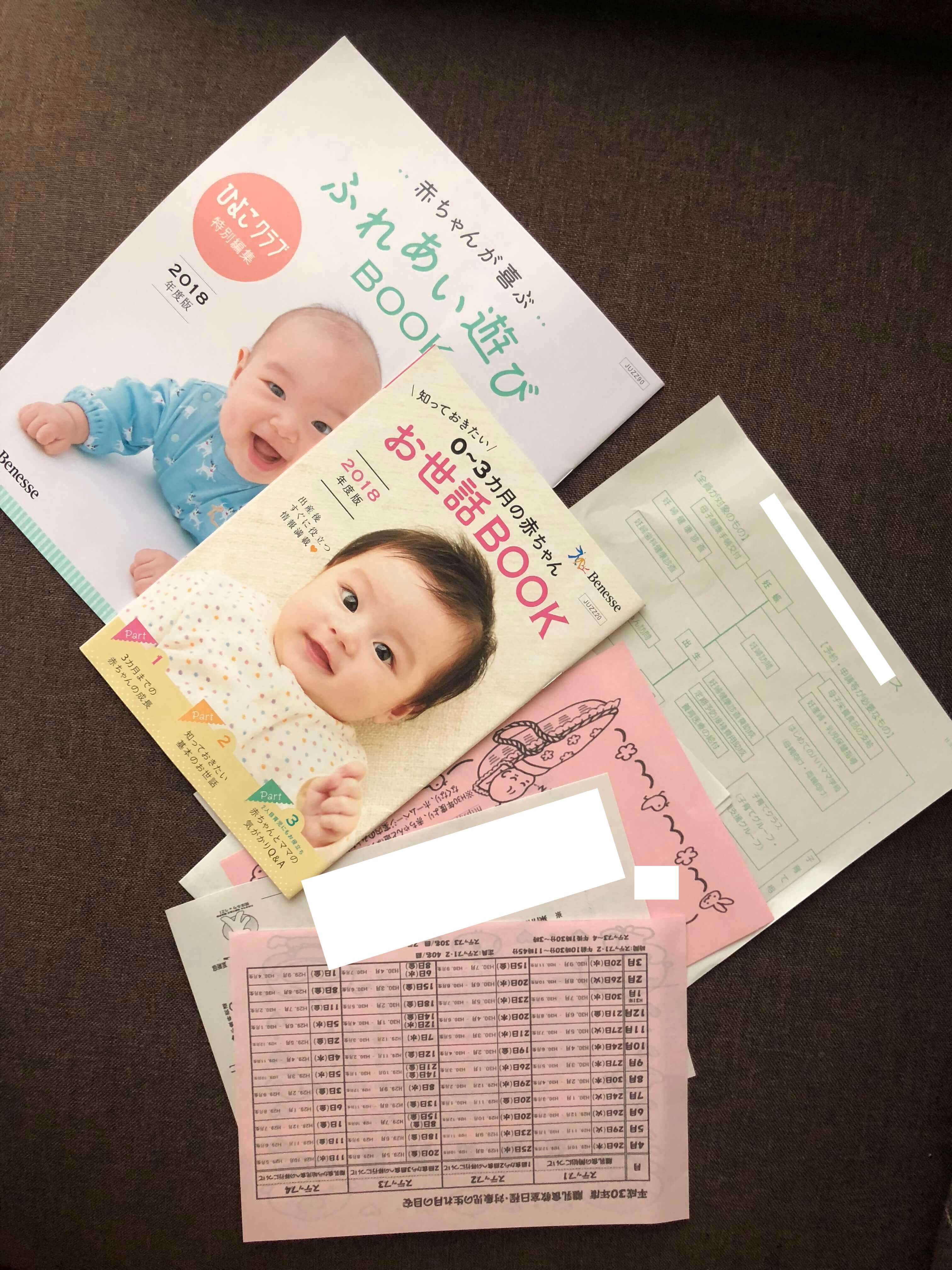 子育ての知識が得られる資料や、地域の離乳食教室、予防接種のスケジュールなど色々な資料もいただきました。