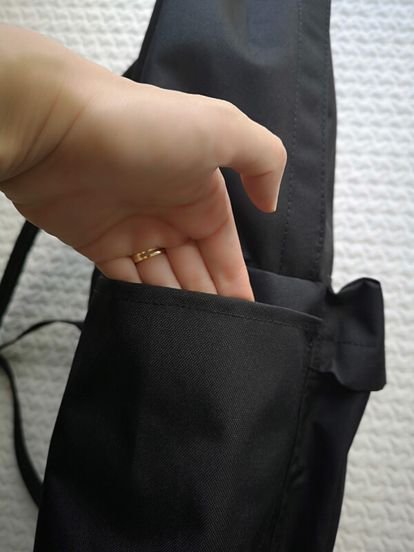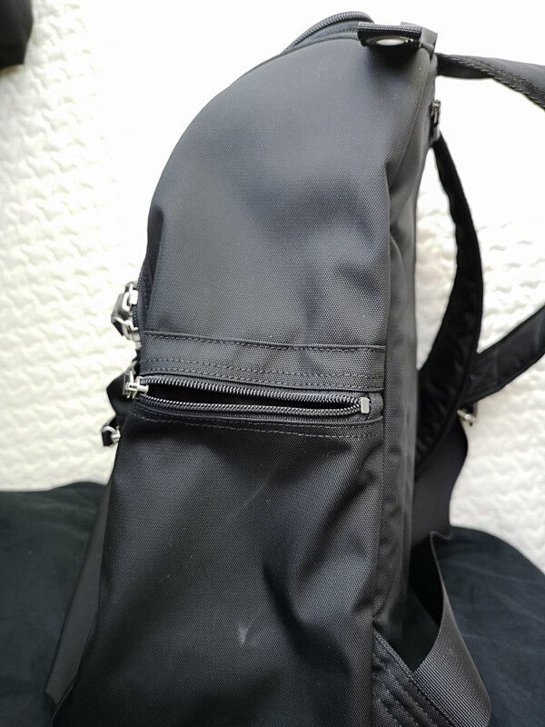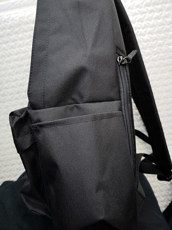 サイドにはチャックが付いており、メッシュポケットに入れた物をこのチャックから取ることができます。