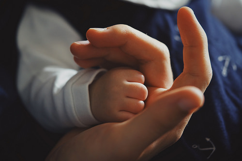 - 赤ちゃんに指を握らせて左右上下に揺らす