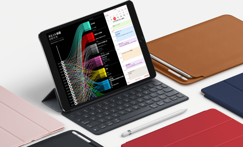 この上で注目すべきは「iPad Pro」シリーズになります。「10.5インチ」と「12.9インチ」の2つのディスプレイサイズが用意されており、「12.9インチ」モデルでも、「A4」の紙よりちょっと大きいくらいなので、そこまで大きくはありません。「10.5インチ」に関しては、男性用のボディバックにも簡単に入ってしまうくらいの大きさです。