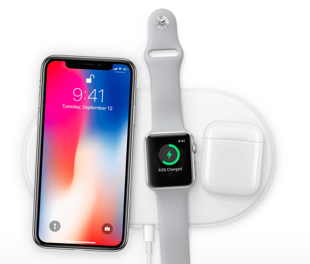 安い「ワイヤレス充電器」だと一度に複数台置けたとしても、同時充電ができない中、「Air Power」は上記の画像のように、「iPhone」、「Apple Watch」、そして「Air Pods」を同時に充電することが可能になります。