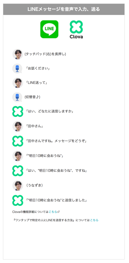 また読み上げをしてくれるということは「音声」で「LINE」を上記の画像のように返信することができます。子どもで手が塞がっているとき。でもすぐに返信をしたいときにすごく重宝される機能ですよね。