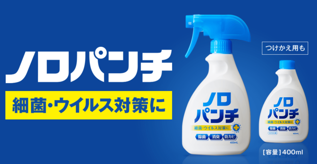 そしてこれは、除菌とはちょっと違いますが、「ノロウイルス」などに効能があるとされている「ノロパンチ」です。「手ピカジェル」や「クレベリンゲル」と異なり、「予防」ではなく「対処」です。