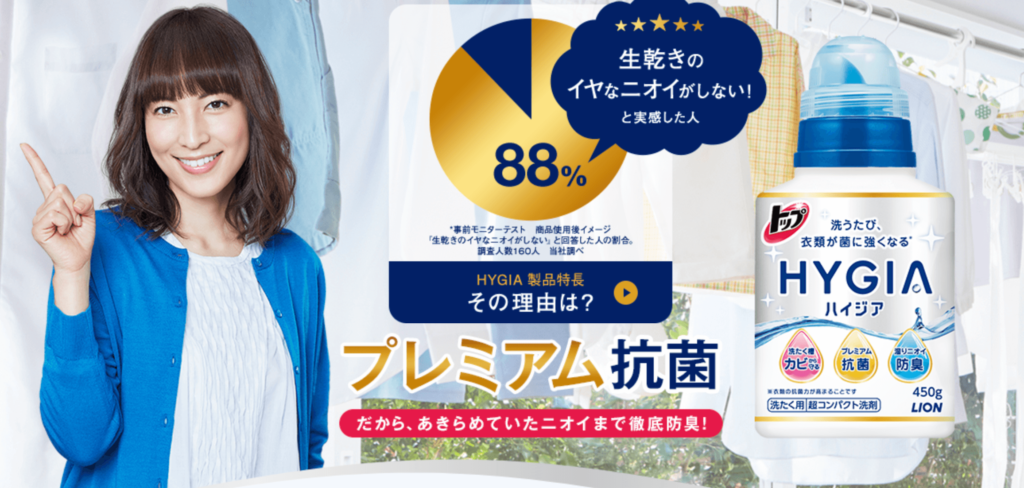 また抗菌作用に強いということは、生乾きによる菌の発生を抑えることができるので、生乾きの嫌なニオイも抑えることができます。特に洗濯物を外に干しにくい、梅雨や花粉、そして冬の時期に大活躍してくれる洗剤になります。
