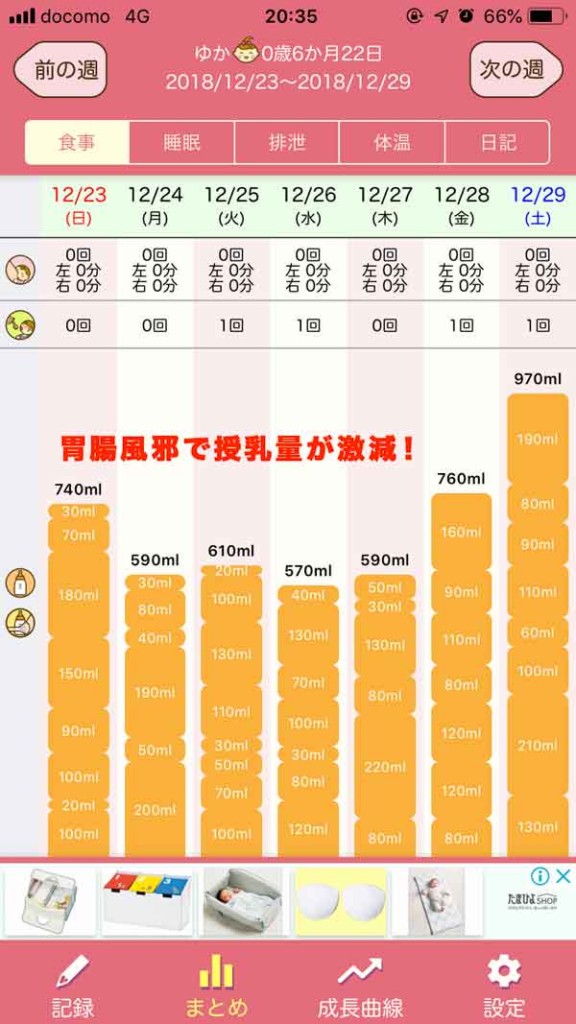 胃腸風邪が治り、授乳量が復活!したのも、つかの間。