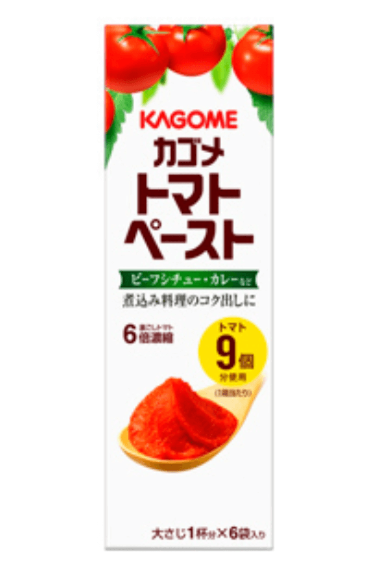 種や皮を覗かなければいけない下処理が面倒なトマトはカゴメのトマトペーストを使っています。
