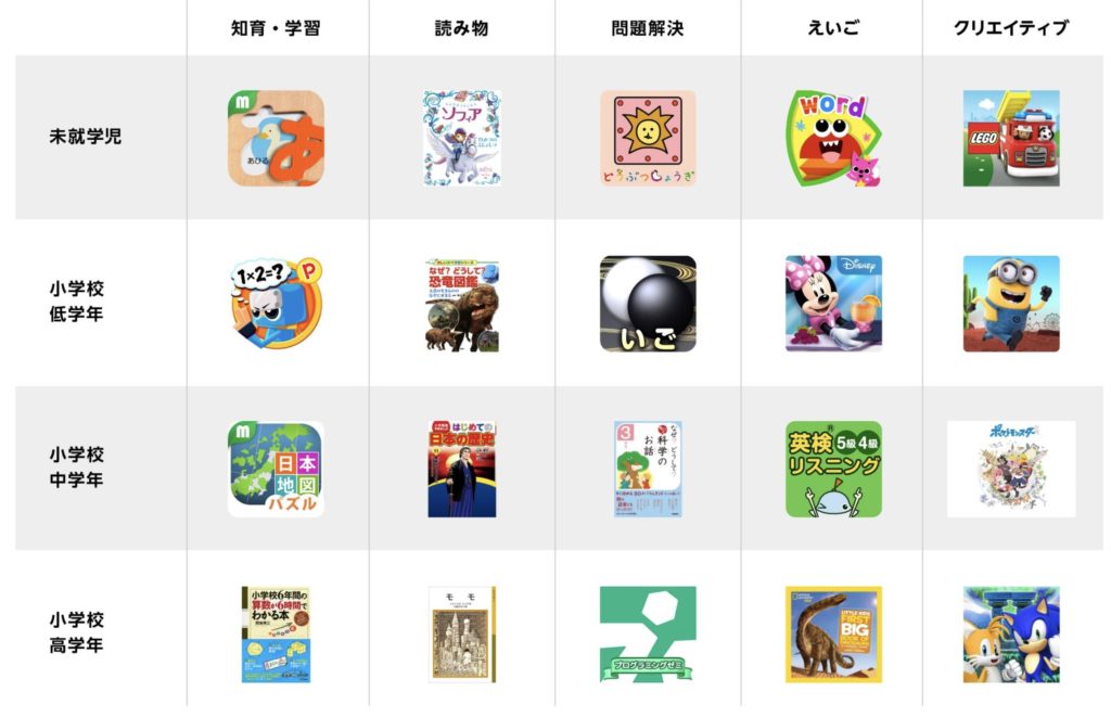 「ディズニー」「NHKエンタープライズ」「ベネッセ」「学研」といった企業がコンテンツを提供しています。