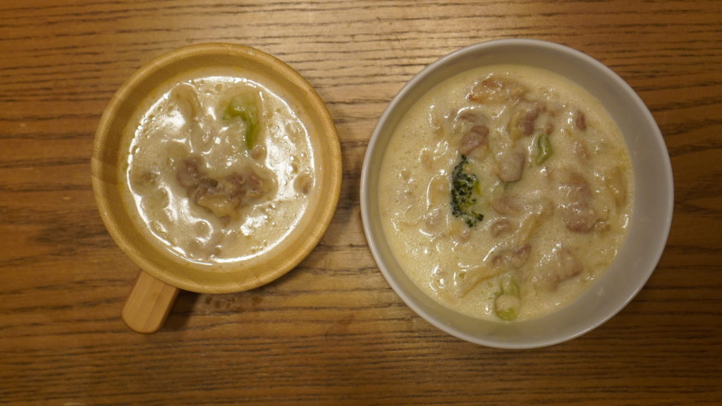 子供用と大人用の器に、クリーム煮を盛ってみました!
