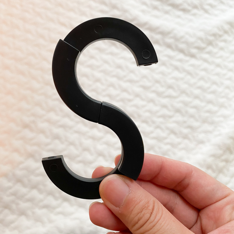 その名の通りS字フックですが折りたたみ式でとってもコンパクトに使えます。