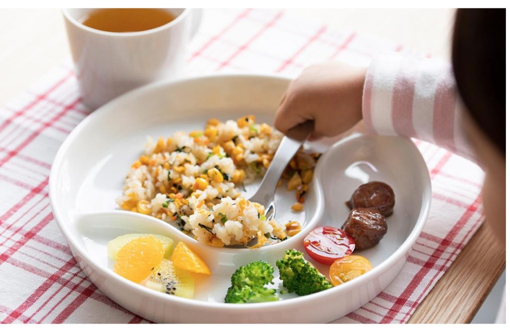 こどもがご飯を掬いように、食器の端や仕切りが高く出来ていて、