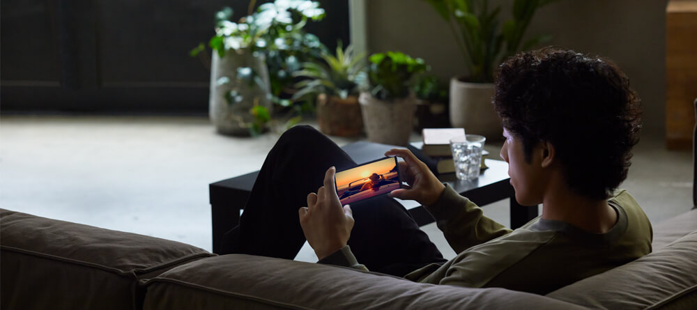 子どもの寝かしつけが終わったら少しくらい自分がゆっくりする時間が欲しいですよね。「Xperia 5II」は6.1インチのディスプレイを搭載。さらにアスペクト比21:9と映画のスクリーンサイズと同じアスペクト比を採用しているので、対応コンテンツであれば、映画など全画面表示で見ることができます。
