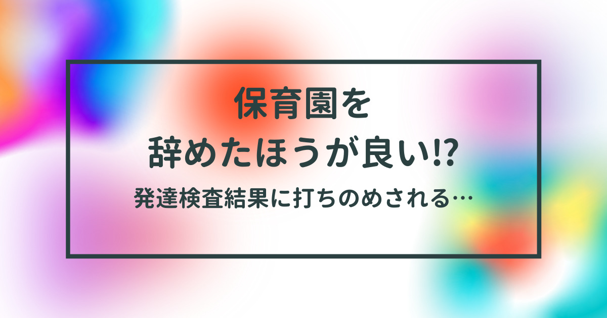 身体発達は問題ないものの認知47、言語43と1歳後半の結果で、保育園を辞めて児童発達センターで週5通園の方が良いというアドバイスをもらいました。